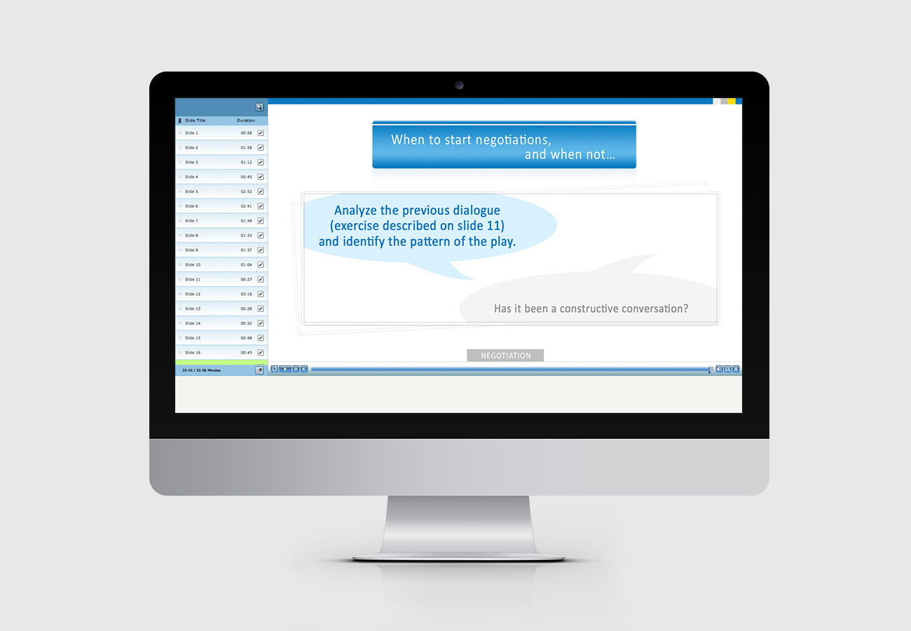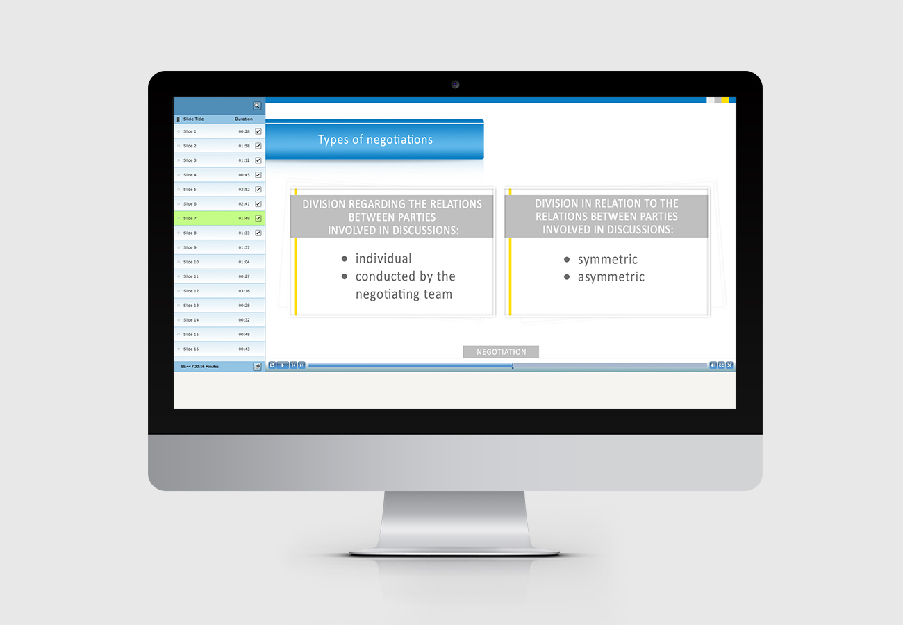 Kurs „Negotiation”przygotowuje do udziału w całym procesie negocjacyjnym – od określenia celów do wypracowania optymalnych wyników. Kurs prowadzony jest w formie praktycznych warsztatów umiejętności interpersonalnych, podczas których uczestnicy przyswoją metody prowadzenia negocjacji biznesowych oraz sterowania relacjami poprzez negocjacje.